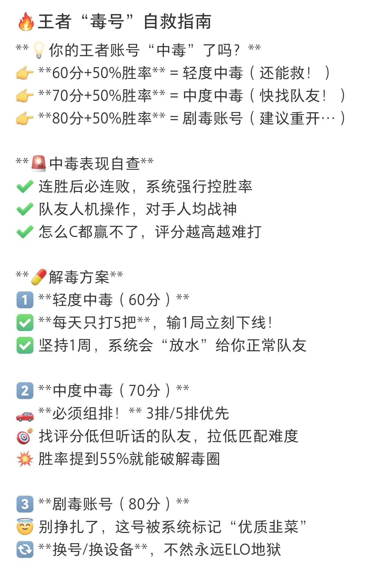 王者荣耀毒号自查/自救